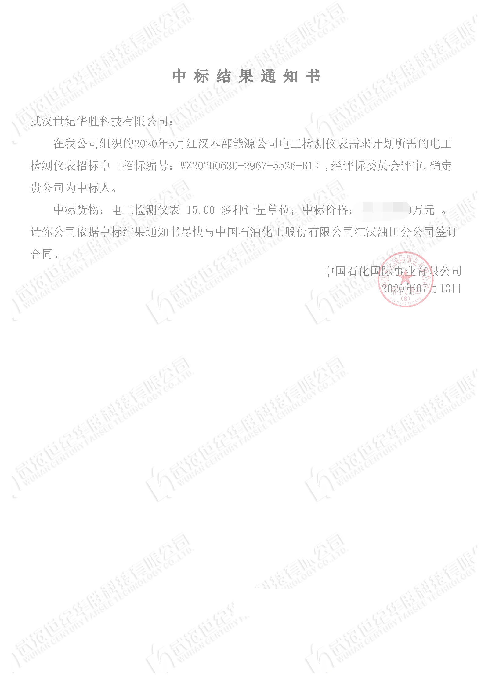7月中旬,我司在中國石化江漢本部能源公司電工檢測儀表項目中成功中標(biāo)。