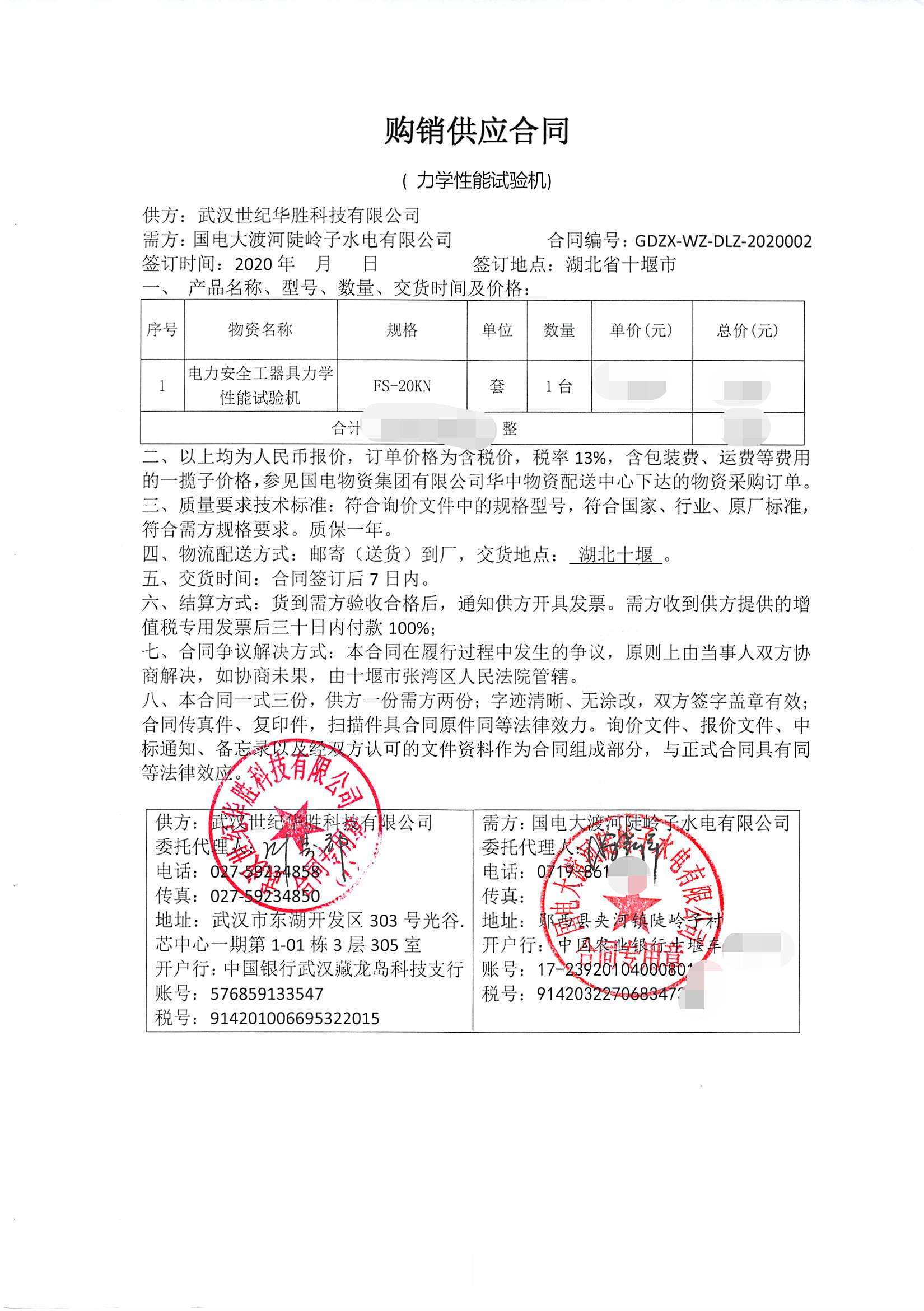 國電大渡河陡嶺子水電有限公司電力安全工器具力學性能試驗機的采購